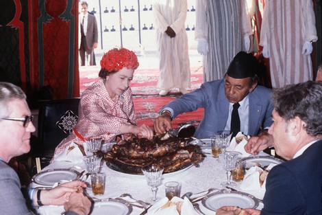 الحسن الثاني يجبر إليزابيت على غسل يديها في «طاس» والأكل بدون شوكة