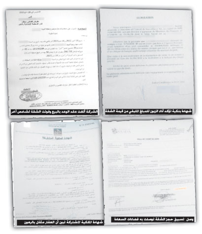 وينفي الزبون المعني المهاجر بالديار الفرنسية أن يكون توصل مطلقا، بأي رسالة أو إخبار من قبل الشركة كيفما كان نوعها. وزاد مضيفا أنه لو قامت الشركة بأي إجراء من هذا القبيل لما بقيت قيمة الشيك التي توصل بها الموثق المشرف على إتمام عملية البيع، لدى الموثق نفسه لمدة تقارب سبعة أشهر.