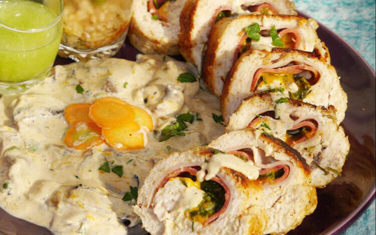 نمدده للحصول على شكل مربع، ونضع وسطه البقدونس والمدخنات والجبن، ونلفه للحصول على بودان.