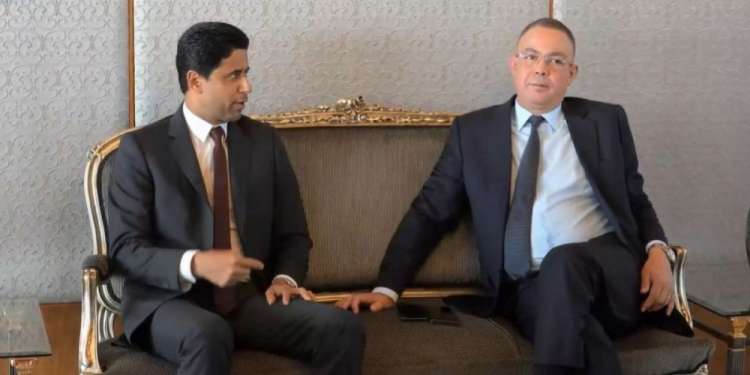 التقى القطري ناصر الخليفي، رئيس نادي باريس سان جيرمان الفرنسي، أول أمس الأربعاء، بفوزي لقجع، رئيس الجامعة الملكية المغربية لكرة القدم، بمركب محمد السادس بالمعمورة، على هامش الزيارة التي قام بها رئيس النادي الفرنسي من أجل دعم جهود الإغاثة تضامنا مع الشعب المغربي عقب الزلزال المأساوي الذي ضرب المغرب قبل أسبوعين.