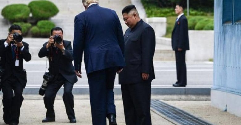 وقال ترامب للصحفيين “لحظة وصولى خط الحدود سألت كيم إن كان بوسعى العبور”، فكان رد الزعيم الكورى الشمالى هذا “شرفوبات ترامب أول رئيس أمريكى تطأ قدماه كوريا الشمالية، بعد ثوان من لقاء زعيمها كيم فى المنطقة المنزوعة السلاح، بين الكوريتين.