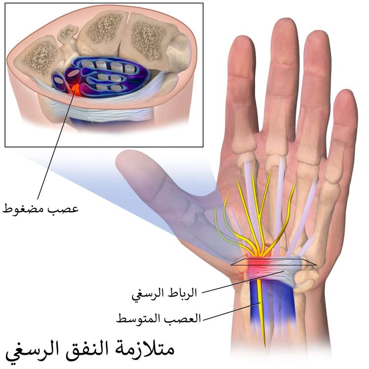 متلازمة النفق الرسغي هي عبارة عن ضيق بالقناة أو النفق الذي يمر منه العصب الرسغي، مما يتسبب في مشاكل باليد.
