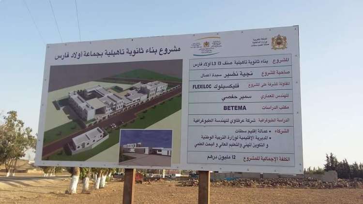 تستعد مجموعة من الفعاليات ومنتخبي جماعة أولاد فارس، بإقليم سطات، للتوقيع على عريضة للمطالبة بتدخل الجهات المسؤولة من أجل إيجاد حل لمشكل توقف مشروع بناء مؤسسات تعليمية منذ أزيد من ثلاث سنوات، بعد توقف أشغال إنجـــاز ثانوية تأهيليـــة وداخليــة بجماعة أولاد فارس بدائرة ابن احمد الجنوبية، والتي كانت تكلفت ببنائها المحسنة المعروفة بـ«مولات المليار ونصف»، والتي رصدت لها ميزانية تقدر بـ12.000.000,00 درهم، بالإضافة إلى تأهيل الوحدة المدرسية «لهديلات» التابعة لمجموعة مدارس أولاد فارس بالجماعة نفسها، وذلك بسبب خلاف بين المحسنة والمقاولة المكلفة بعملية البناء، وهو الخلاف الذي ساهم في إفشال مشروع حيوي بالمنطقة، في غياب تدخل الجهات التي أشرفت على حفل توقيع اتفاقية إطار بخصوص هذا المشروع.