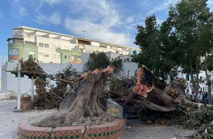 تسبب سقوط شجرة معمرة، بحديقة بيرطوتشي بتطوان، بالقرب من مدرسة الصنائع بباب العقلة، مساء أول أمس الخميس، في استنفار كافة السلطات المحلية والأمنية ومصالح الجماعة الترابية، وذلك من أجل إعادة فتح الطريق أمام الراجلين والسيارات وفق السرعة الممكنة، وتقطيع الأغصان وحملها في شاحنات تابعة لمصلحة الأشغال، قصد استعمال الحطب في مهام أخرى.