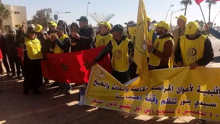 عاد ملف أعوان الحراسة والنظافة والمطبخ، بالمؤسسات التعليمية بإقليم سيدي بنور، إلى الواجهة بعد خوضهم، الاثنين الماضي، وقفة احتجاجية أمام مقر عمالة الإقليم، للمطالبة بتحسين أوضاعهم المادية، وكذا احتجاجا على عدم التزام الشركة المعنية بصرف أجورهم بطريقة سلسة. ودعا الأعوان المحتجون إلى تسوية وضعياتهم القانونية والإدارية، بالإضافة إلى منحهم حقوقهم الأساسية المتعلقة بالأجور والتغطية الصحية، معربين عن استيائهم من عدم استجابة الجهات المسؤولة لمطالبهم رغم الوعود السابقة التي قدمتها لهم.