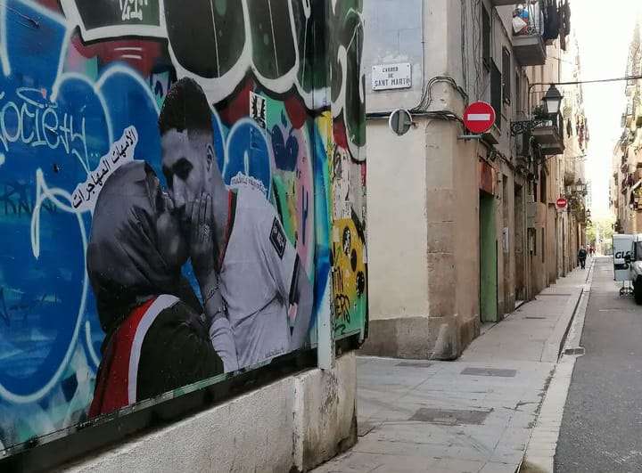 عبرت شابة تقطن بمدينة برشلونة عن إعجابها بالعلاقة التي تجمع لاعبي المنتخب المغربي بأمهاتهم، وذلك من خلال رسم جدارية كبيرة في أحد شوارع برشلونة للنجم المغربي أشرف حكيمي وهو يتلقى قبلة من والدته.