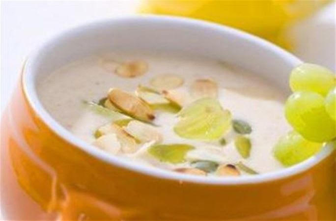 صبي هذه المكونات في طبق التقديم، وأضيفي إليها القليل من جوز الكوزة والفلفل الأسود، وأدخليها إلى الثلاجة قليلا. وفي هذه الأثناء قومي بغسل وتقشير حبات العنب، ثم اقسميها إلى نصفين وانزعي بذورها، وبعد إخراج الطبق من الثلاجة أضيفي إليه قطع العنب، واتركيه مجددا لبضع دقائق قبل تناوله.