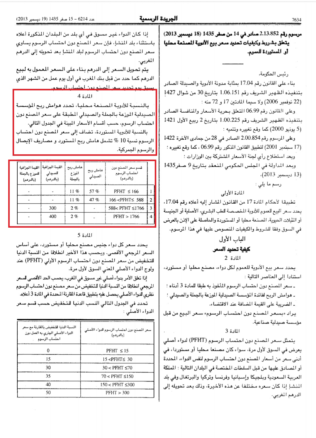ويتعلق الأمر بمرسوم أصدره بنكيران يوم 18 دجنبر 2018، يتعلق بشروط وكيفيات تحديد سعر بيع الأدوية المصنعة محليا أو المستوردة للعموم. وحسب المادة الرابعة من المرسوم، فإنه بالنسبة للأدوية المصنعة محليا، تحدد هوامش ربح المؤسسة الصيدلية الموزعة بالجملة والصيدلي المطبقة على سعر المصنع دون احتساب الرسوم، وبالنسبة للأدوية المستوردة، تضاف إلى سعر المصنع دون احتساب الرسوم نسبة 10 في المائة تشمل هامش ربح المستورد ومصاريف النقل والرسوم الجمركية، وهذه النسبة الإضافية يعتبرها صناع الأدوية المحليون إجحافا في حقهم وفي حق المستهلك، وكذلك تضر بالاقتصاد الوطني، لأن كل الأرباح تذهب إلى الخارج بالعملة الصعبة، ولا تستفيد خزينة الدولة من مداخيل ضريبية مهمة.