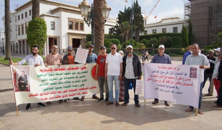 احتج عشرات المتضررين من عملية توزيع محلات سوق الصالحين بسلا، يوم السبت الماضي، في وقفة احتجاجية نظمتها الجمعية المغربية لحماية المال العام أمام مقر البرلمان بالرباط.