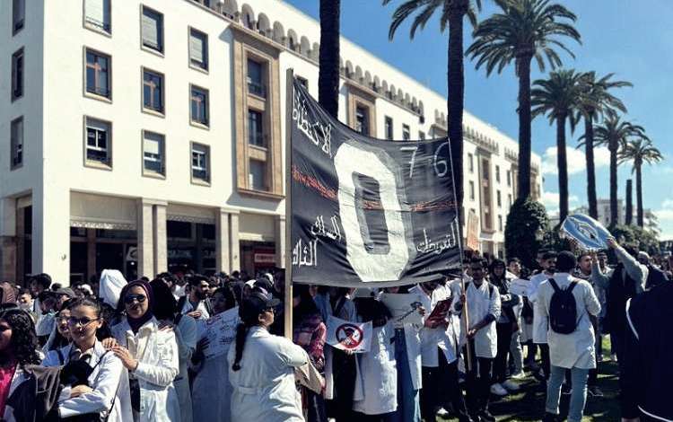 احتج العشرات من طلبة الطب والصيدلة، أول أمس الخميس، بالعاصمة الرباط، ردا على تصريحات مشتركة لعبد اللطيف ميراوي، وزير التعليم العالي والبحث العلمي، وخالد آيت الطالب، وزير الصحة والحماية الاجتماعية، التي توعدا فيها المقاطعين للامتحانات بـ«الأصفار»، مؤكدين خلالها تشبثهما بتقليص مدة التكوين من 7 إلى 6 سنوات.