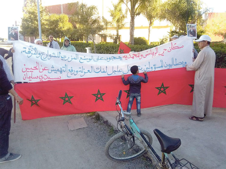 الوقفة الاحتجاجية التي حضرها العشرات وأطرها سكان الحيين باستثناء المتعاطفين مع حزب “المصباح”، رفعت خلالها لافتات طالبت بضرورة استفادة الحي من عملية التزفيت، وعبرت عن احتجاج السكان على الوضع المزري للأزقة والشوارع التي باتت عليها أحياء (الرياض والمحمدية)، خاصة أن جميع اللقاءات التي عقدها السكان مع رئيس المجلس البلدي لسيدي سليمان كانت تنتهي برزنامة من الوعود «الكاذبة» حسب ما صرح به أحد المحتجين للجريدة، والذي عبر عن عدم ثقته في قدرة المجلس الحالي الذي يقوده حزب العدالة والتنمية على إصلاح وضعية الحيين.