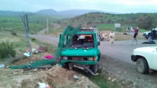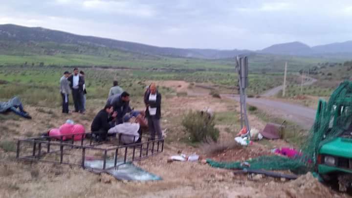 وقعت حادثة سير خطيرة  مساء أمس الأحد بطريق تيزكي ضواحي دمنات اقليم أزيلال، حيث كانت سيارة للنقل السري من نوع مرسيديس “207” تحمل عدد كبير من الركاب ففقد سائقها السيطرة على المقود بالقرب من مفترق الطرق ، وانقلبت به بجانب الطريق ، ليصاب على اثرها 11 راكب بينهم سيدة خمسينية لقيت مصرعها على الفور وبعين المكان.