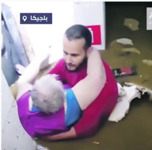 في منتصف يوليوز من العام الماضي، تداول رواد مواقع التواصل الاجتماعي على نطاق واسع شريط فيديو، يكشف عن لحظة تدخل شاب مغربي لإنقاذ سيدة بلجيكية، كانت عالقة لساعات طويلة وسط المياه التي غمرت منزلها.