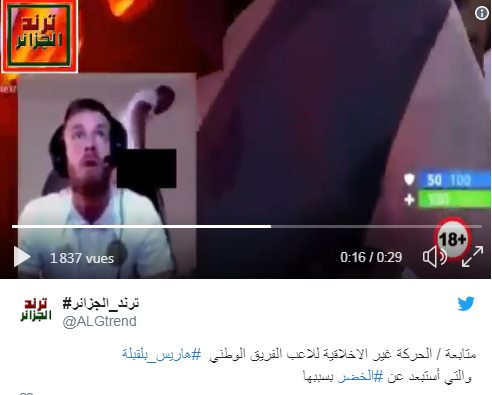 وانتشر شريط فيديو فاضح لهاريس بلقبلة، على مواقع التواصل الاجتماعي، تظهر فيه مؤخرته، فيما كان زميله الحارس ألكسندر أوكيدجة يمارس لعبة إلكترونية، وفق ما نقلت وكالة “فرانس برس”.