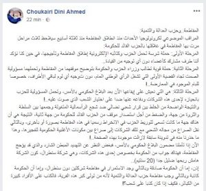 و اعتبر أن “النتيجة الواضحة من الخلط بين قرار شعبي نضالي ضد شجع الرأسمالية المتغولة وجمعها بين السلطة والثروة من جهة، والضغط من أجل استصدار موقف من الحزب القائد للحكومة من جهة ثانية، النتيجة هي أن هناك جهة ما كانت تسعى لتوريط الحزب في الانخراط رسميا في هذه المقاطعة بصورة أو بأخرى، وبالتالي نقل الصراع من مجاله الشعبي مع تلك الشركات إلى صراع بين مكونات الأغلبية الحكومية لتفجيرها، وهذا ما حذرنا منه في تدوينة سابقة لازالت موجودة بهذه الصفحة..!”