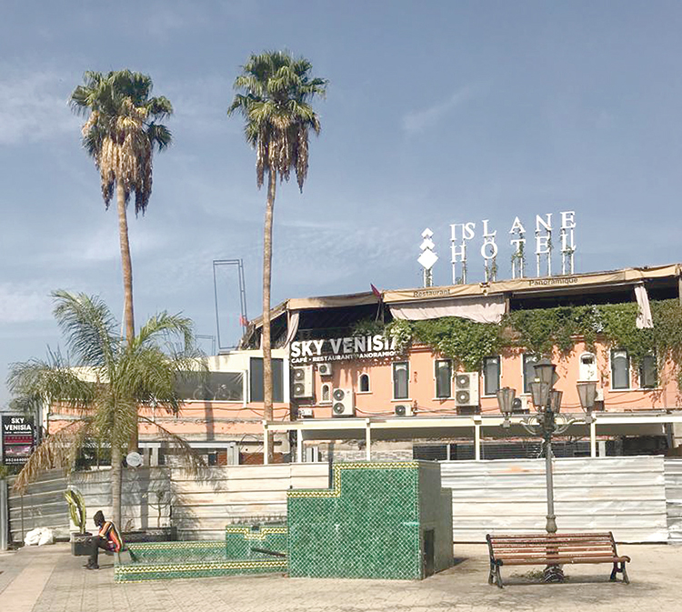 وتدخلت السلطات المحلية في شخص قائد الملحقة الإدارية جامع الفنا، يوم الجمعة الماضي، وأوقفت ورشا للبناء فوق الملك العمومي بهدف ضمه إلى الفندق المذكور، علما أن صاحبه سبق وأن حصل على ترخيص من أجل احتلال حوالي 150 مترا مربعا من حديقة عمومية، موقع من طرف يونس بنسليمان، نائب عمدة مراكش ورئيس مقاطعة مراكش المدينة، قبل أن يفاجأ صاحب الفندق السلطات وهو يستقوي عليها، بترخيص جديد موقع من طرف أحد نواب رئيس المقاطعة، يسمح لصاحب الفندق بالقيام بإصلاحات، نظير وضع الجبص والزليج وغيره، «ما يعني محاولة التحايل على القانون عبر البناء فوق الملك الجماعي»، يقول أحد المستشارين بمقاطعة المدينة في تصريحه لـ«الأخبار». وخلال شهر أكتوبر من السنة الماضية، وبعد ساعات من مغادرة الملك محمد السادس مسجد الكتبية الذي أدى فيه صلاة الجمعة، شرع صاحب الفندق المقابل للمسجد المذكور، في جنح الظلام، في تشييد بناية اقتطعها من الملك العام وأضافها إلى بنايته أمام مرأى ومسمع من السلطات ومسؤولي المجلس الجماعي.