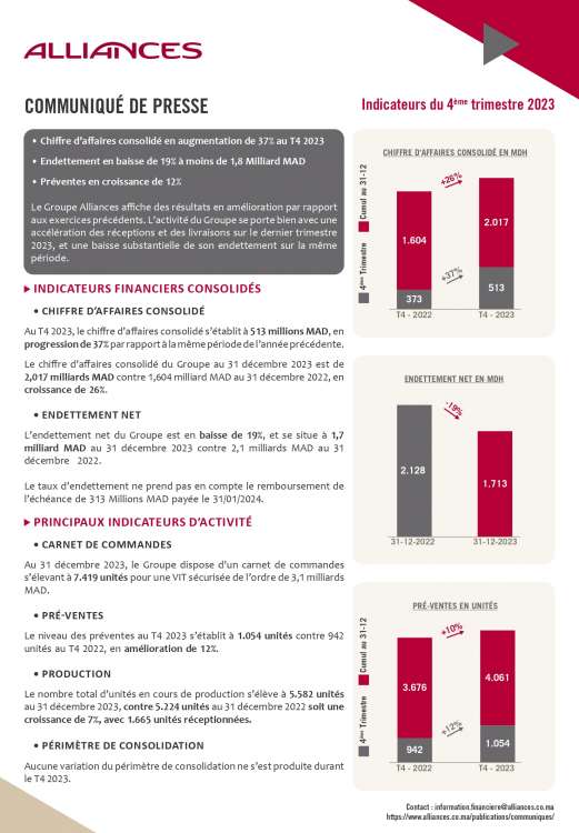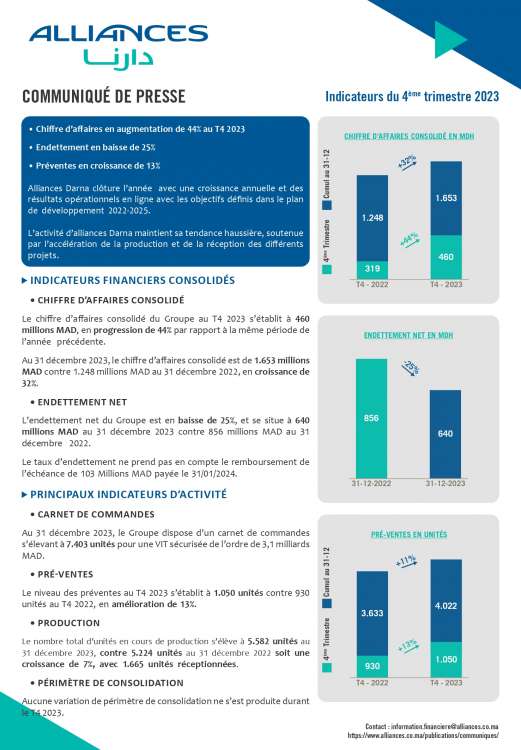 COMMUNIQUEě DE PRESSE (ALDARNA)RESULTATS T4 2023