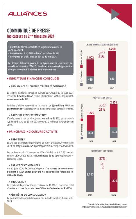 أعلنت مجموعة أليانس و أليانس دارنا عن نتائجها المالية للربع التاني من سنة 2024: allinaces darna alliances
