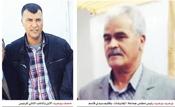 يواجه رئيس مجلس جماعة «الخنيشات» بإقليم سيدي قاسم، بوعبيد بوعبيد، عن حزب الاستقلال، عدة ملفات أمام القضاء، حيث قرر قاضي التحقيق متابعته رفقة ابنه المستشار بنفس جماعة، منصف بوعبيد، الذي يشغل منصب النائب الثاني لوالده الرئيس، من أجل إحداث تجزئة عقارية بدون ترخيص، ويتابعان في ملف آخر يتعلق بالسطو على ممتلكات جماعية.