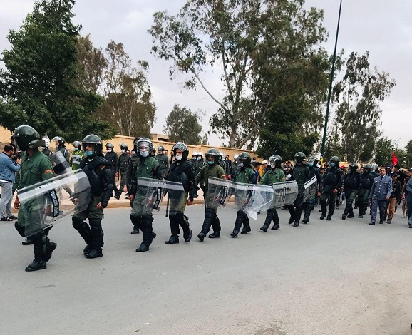 وشهدت هذه المسيرة الاحتجاجية استنفارا أمنيا كبيرا وفقا للفيديوهات والصور التي تحصلت عليها الجريدة من مصدر خاص، حيث عرفت هذه المسيرة وجود عدد من عناصر القوات المساعدة والوقاية المدنية ومجموعة من قوات التدخل السريع، إضافة إلى عناصر من الدرك الملكي بمختلف رتبهم، وذلك من أجل تأمينها وحتى لا تخرج الأمور عن السيطرة بفعل العدد الكبير من الناس الذين شاركوا فيها وعبروا عن تذمرهم من نزع ملكيتهم الخاصة دون تعويضهم بالشكل اللائق، ووفقا لما ينص عليه القانون.