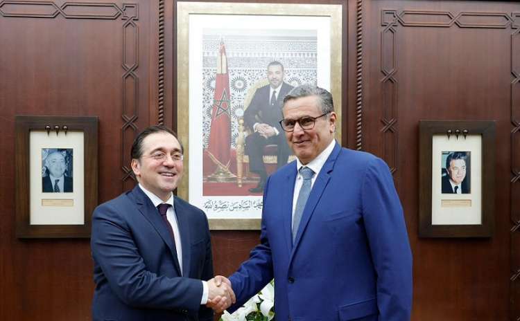 وفي هذا السياق، استقبل رئيس الحكومة، عزيز أخنوش، وزير الخارجية الإسباني، ألباريس، خلال هذا اللقاء، نوه الجانبان بالمستوى المتميز لعلاقات الصداقة والتعاون التي تجمع بين البلدين، وبالشراكة الاستراتيجية الثنائية المغربية الإسبانية، التي يرعاها قائدا البلدين الملك محمد السادس، والعاهل الإسباني، الملك فيلبي السادس. وأشاد المسؤولان بتطابق وجهات النظر بشأن مختلف الملفات ذات الاهتمام المشترك، وبالشراكة المتميزة، القائمة على أسس حسن الجوار والثقة المتبادلة والحوار الدائم والبناء، خاصة منذ أبريل 2022، بعد الزيارة التي قام بها رئيس الحكومة الإسبانية، السيد بيدرو سانشيز للمغرب، بدعوة من صاحب الجلالة الملك محمد السادس، نصره الله، حيث أضحت الشراكة الاستراتيجية بين البلدين حاليا شراكة متعددة الأبعاد وتشمل كافة المجالات.