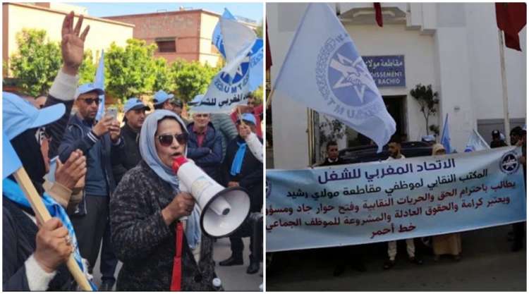خاض الموظفون بمقاطعة مولاي رشيد، وقفة احتجاجية، نهاية الأسبوع الماضي، تنديدا برفضهم العديد من القرارات داخل المقاطعة، آخرها تعسف أحد رؤساء المصالح على إحدى الموظفات، والاعتداء عليها بـ “الصفع”.
