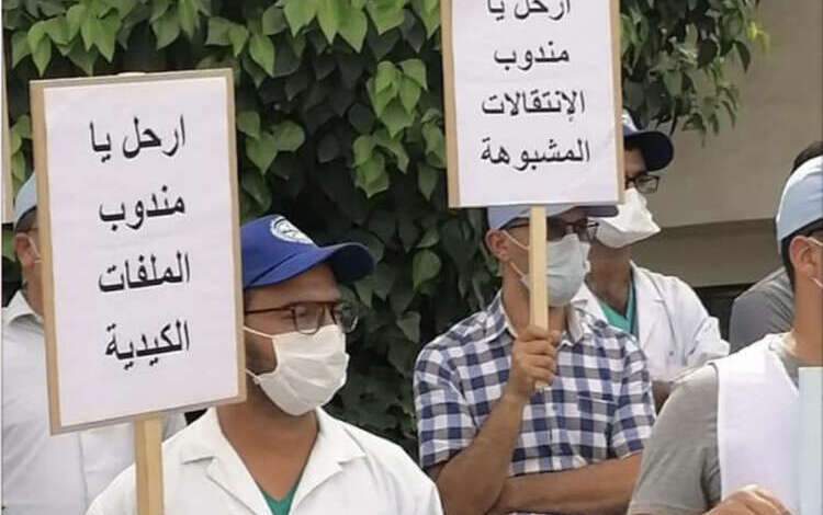 ورفع المحتجون خلال الوقفة ذاتها يافطة يطالبون من خلالها برحيل المندوب الإقليمي للصحة، وكذا للتنديد بما أسموه حرمان موظفة من حقها في الالتحاق بمقر عملها الأصلي مركز الترويض، مع إدانة ما أسموها محاولة البعض التضييق على المعنية بالأمر لثنيها عن المطالبة بحقها في تفعيل مقرر الانتقال.