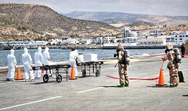 في إطار التعاون المغربي الأمريكي في مجال تدبير الكوارث، أجرت قوات جيشي البلدين، أمس الإثنين بالميناء البحري العسكري لأكادير، عملية تدخل عسكري لمواجهة المخاطر النووية والإشعاعية والبيولوجية والكيماوية الناجمة عن تهديد نووي، في عملية محاكاة عبر سيناريو قريب جدا من الواقع، تم تصميم تمرينه من طرف “إم تي إكس للأسد الإفريقي”.