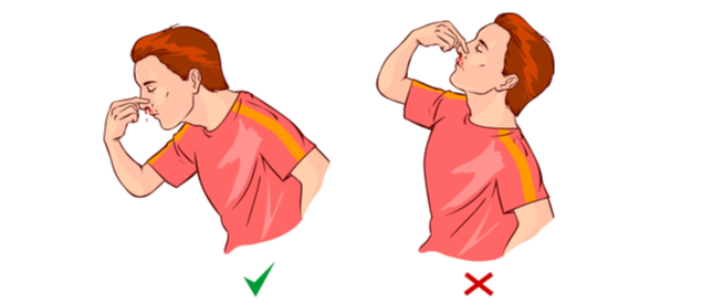 وخلافا للاعتقاد الشائع، يجب تجنب إمالة الرأس للخلف عند حدوث نزيف في الأنف. ولسبب وجيه، يمكن أن يؤدي إلى ظهور دم في الحلق والذي قد يسبب الغثيان بمجرد ابتلاعه.