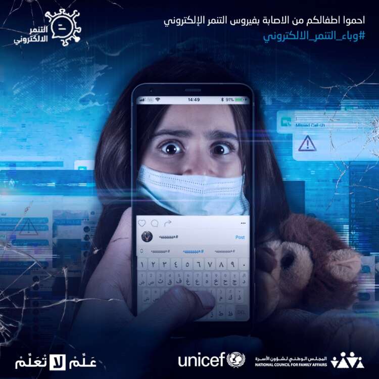 وتعرفه منظمة «اليونيسيف» بأنه هو شكل من أشكال المضايقات يمارس من خلال التقنيات الرقمية. يمكن التعرض له على الشبكات الاجتماعية، في نظام المراسلة، أثناء جلسات الألعاب عبر الإنترنت وعلى الهواتف المحمولة. هو سلوك متكرر والغرض منه زرع الخوف أو الانزعاج أو الخزي في نفوس المستهدفين. هذا ما يحدث، على سبيل المثال، عندما ننشر أكاذيب أو صورًا محرجة لشخص ما على الشبكات الاجتماعية، أو عندما نرسل رسائل أو تهديدات عدوانية على منصات التواصل الاجتماعي، أو عندما تستحوذ على حساب شخص ما وترسل رسائل غير لائقة نيابة عنه.