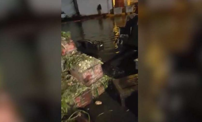 وأظهر مقطع فيديو، كيف تحول سوق الجملة إلى مسبح، نتيجة تدفق المياه العادمة من قنوات الصرف الصحي، التي نتج عنها رائحة كريهة، حيث أبدى تجار غضبهم من ضياع سلعهم، في غياب المسؤولين الذين أكدت مصادر محلية، أنه تم إخبارهم بضعف البنية التحتية للسوق قبل أيام من وقوع الكارثة.