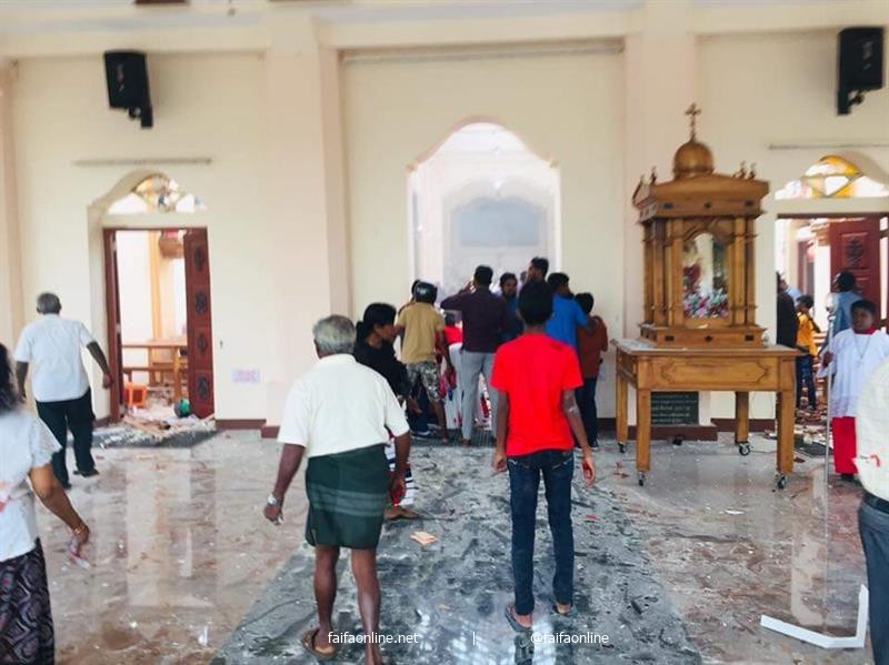 وقال مسؤول بالشرطة إن أكثر من 50 شخصا قتلوا في كنيسة القديس سيباستيان في كاتوفابيتيا شمالي العاصمة كولومبو.