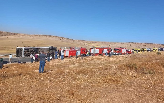 شهدت الطريق الوطنية رقم 11 الرابطة بين مدينتي خريبكة والفقيه بنصالح، صباح أمس الأربعاء، حادثة سير مروعة، إثر انقلاب حافلة لنقل الركاب، وأدت الحادثة إلى مصرع 17 راكبا، وإصابة 30 آخرين بجروح متفاوتة الخطورة، نقلوا على إثرها إلى المستشفى لتلقي العلاجات.