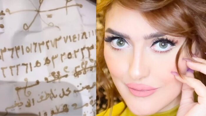 وحاولت الحلاق فك الطلاسم المكتوبة، ولكنها وجدت صعوبة في قراءتها.