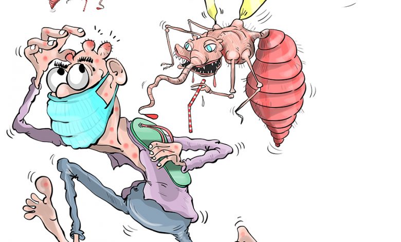 شنيولة هاد العام قدها قد السخط، عالفة الشمندر مزيان، ومْكشرة على نيابها ومعولة على خزيت. مقدهاش فينا «الحجر الصحي» والخلعة ديال كورونا، زادتنا تا هي بقرصاتها، والخايبة هي لاعضاتك شي عضة فالنيف، والكمامة زامطاك، متعرف واش تغامر وتحك وتصدق جايب الربحة، ولا تكمدها وتصبر. «اللهم الناموس ولا الفيروس». وها اللي تينصحك دير لحبق باش تجري عليها، ها اللي تيكوليك دير ليها لقرنفل، باقي شوية ويكولو لينا نذبحو ليها شي «فروج كحل»، معرفناها شنيولة ولا «عيشة قنديشة».