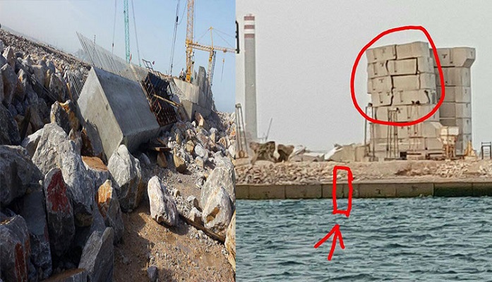 وفي ما يخص مراحل تنفيذ الأشغال وما صاحبها من تعثر بظهور تشققات على مستوى الكتل الإسمنتية المشكلة لهيكل هذا الرصيف، حيث نتج عن ذلك توقيف الأشغال لمدة 8 أشهر، في انتظار إنجاز الخبرات الضرورية واعتماد حل تقني مناسب لمعالجة الوضع، وكان القرار المتخذ بعد إنجاز الخبرات هو إعادة بناء رصيف الفحم، في حين تشير إحدى الخبرات الست المنجزة إلى أن تصميم الرصيف لم يكن وحده المسؤول عن التشققات المشار إليها، بل كانت هناك إضافة إلى ذلك، نقائص تتعلق بكيفية إنجاز الأشغال ومراقبتها. وخلصت الخبرات الخمس الأخرى إلى أن سبب الحادث المذكور، يرجع إلى نقائص في التصميم المقترح من طرف الشركة المكلفة بأشغال إنجاز الرصيف.