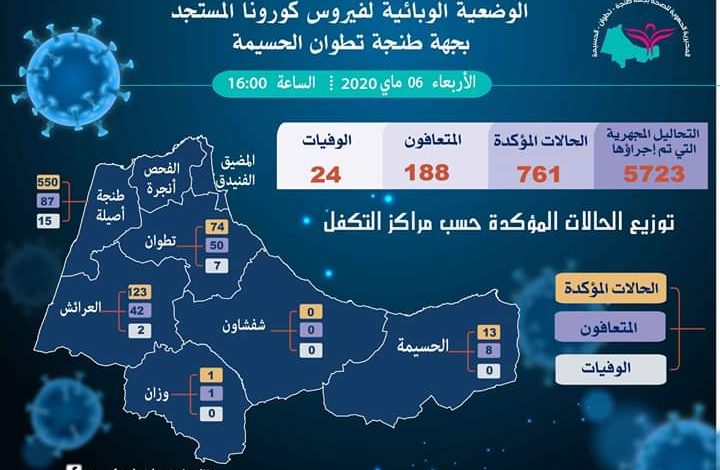 كشفت المديرية الجهوية لوزارة الصحة، بجهة طنجة – تطوان – الحسيمة، مساء اليوم الأربعاء، عن تسجيل 8 حالات تعافي من الجائحة، في أقل من 24 ساعة بالعرائش، فضلا عن وصول مجموع الذين تأكدت اصابتهم بفيروس “كورونا” كوفيد 19 (123)، كما وصل مجموع المتعافين الذين غادروا المؤسسة الاستشفائية الاقليمية بعد ظهور نتائج تحاليل مخبرية سلبية 42.
