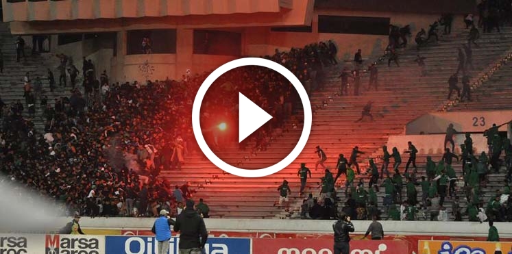 أحداث شغب جماهير الرجاء في مباراة الحسيمة من المدرجات
