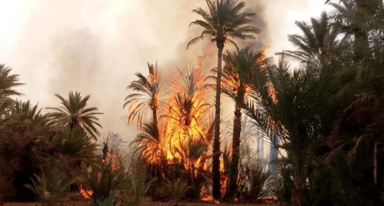 حريق مهول بزاكورة أتى على 3500 نخلة والسلطات استعملت طائرات حديثة في عمليات الإطفاء