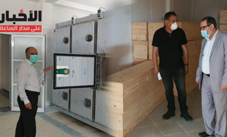 في الوقت الذي يستعرض فيه المسؤولون التجهيزات الطبية نائب عمدة طنجة يستعرض توابيت وثلاجات الموتى