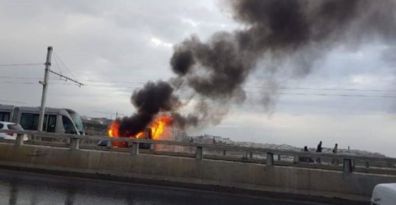 بالفيديو.. النيران تلتهم سيارة بقنطرة مولاي الحسن بين سلا والرباط
