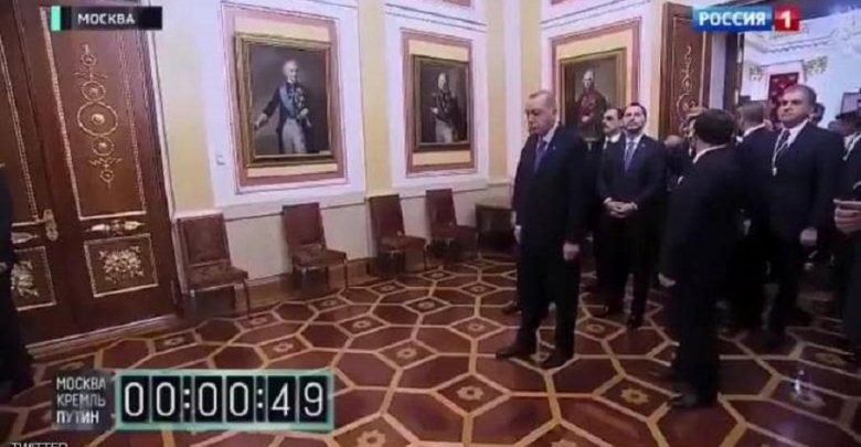 تسريب فيديو يظهر تفتيش أردوغان ومرافقيه بانتظار أن يستقبلهم بوتين