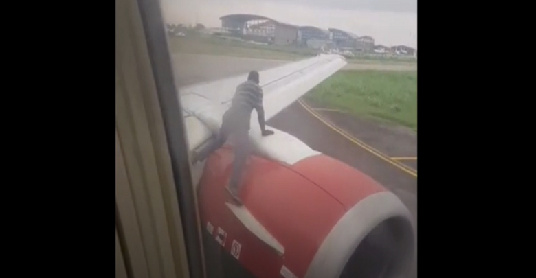 بالفيديو.. رجل يتسلق جناح طائرة قبل إقلاعها بلحظات